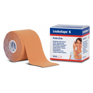 Leukotape K is an elastic adhesive tape with a paper release layer. Made of 97% cotton and 3% Spandex, this tape is intented to help in soothing the sensation of pain and stimulating mechanoreceptors in the skin, increasing neuro-proprioceptive activity. It could also be used for encouraging lymph drainage.